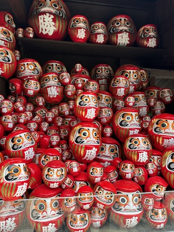 勝尾寺の「勝ちダルマ」は、自分自身の弱さに打ち勝つための自己誓約の象徴として、願いを込めて片目を入れる習慣があります(^_-)-☆