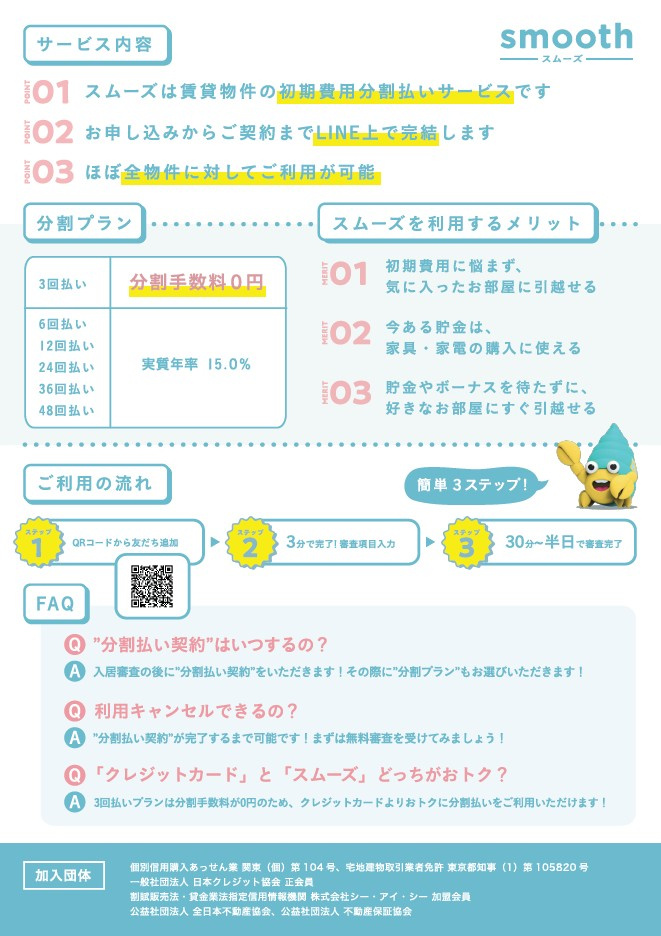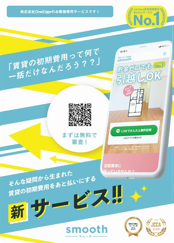 大阪市の賃貸情報【One Edge】 > 株式会社One Edgeのスタッフブログ記事一覧 > 分割サービス★smooth スムーズ★導入しました
